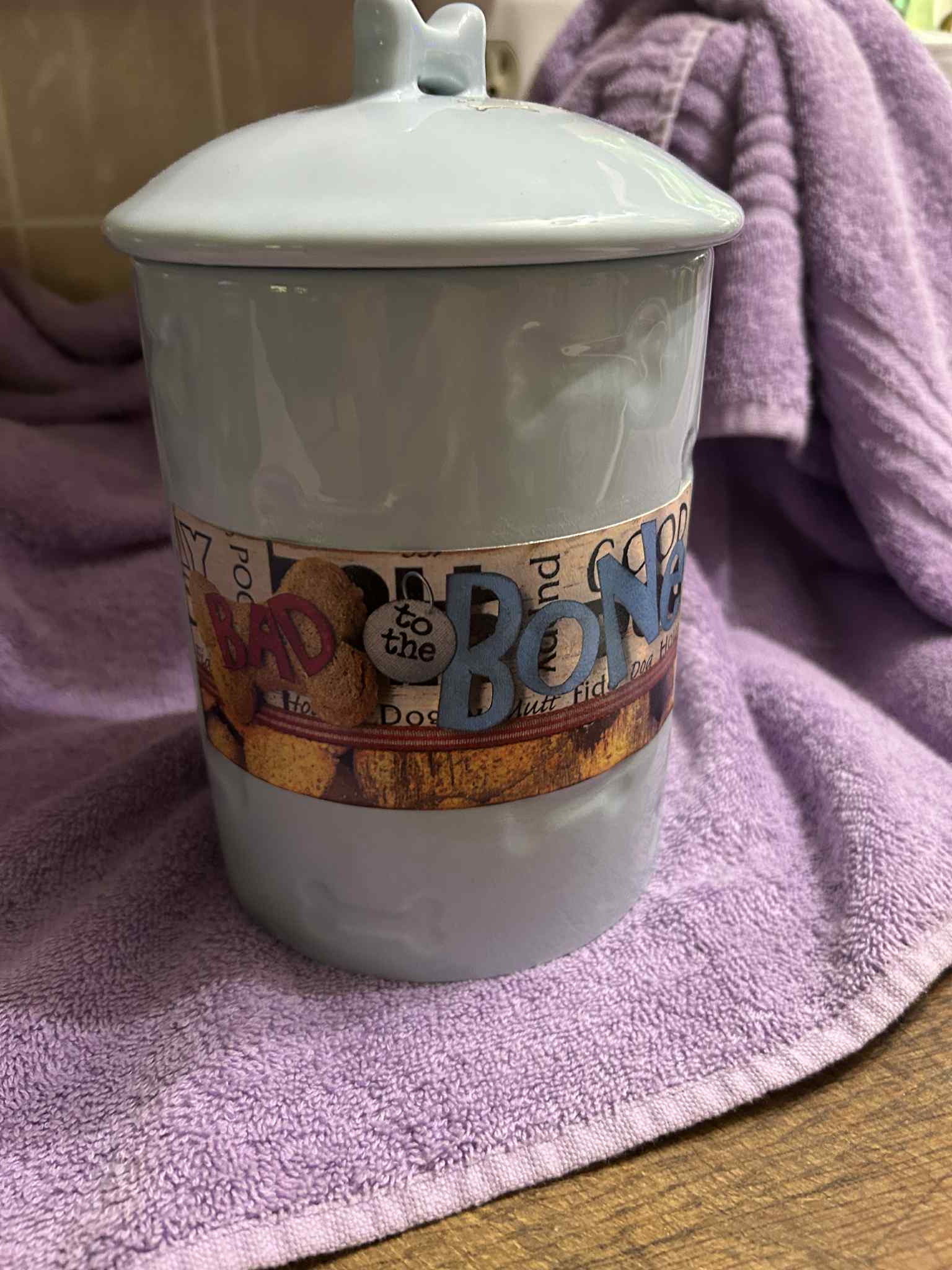 Light blue Dachshund decorated Treat Jar. Measures 7"x5". Brand new. Ceramic.