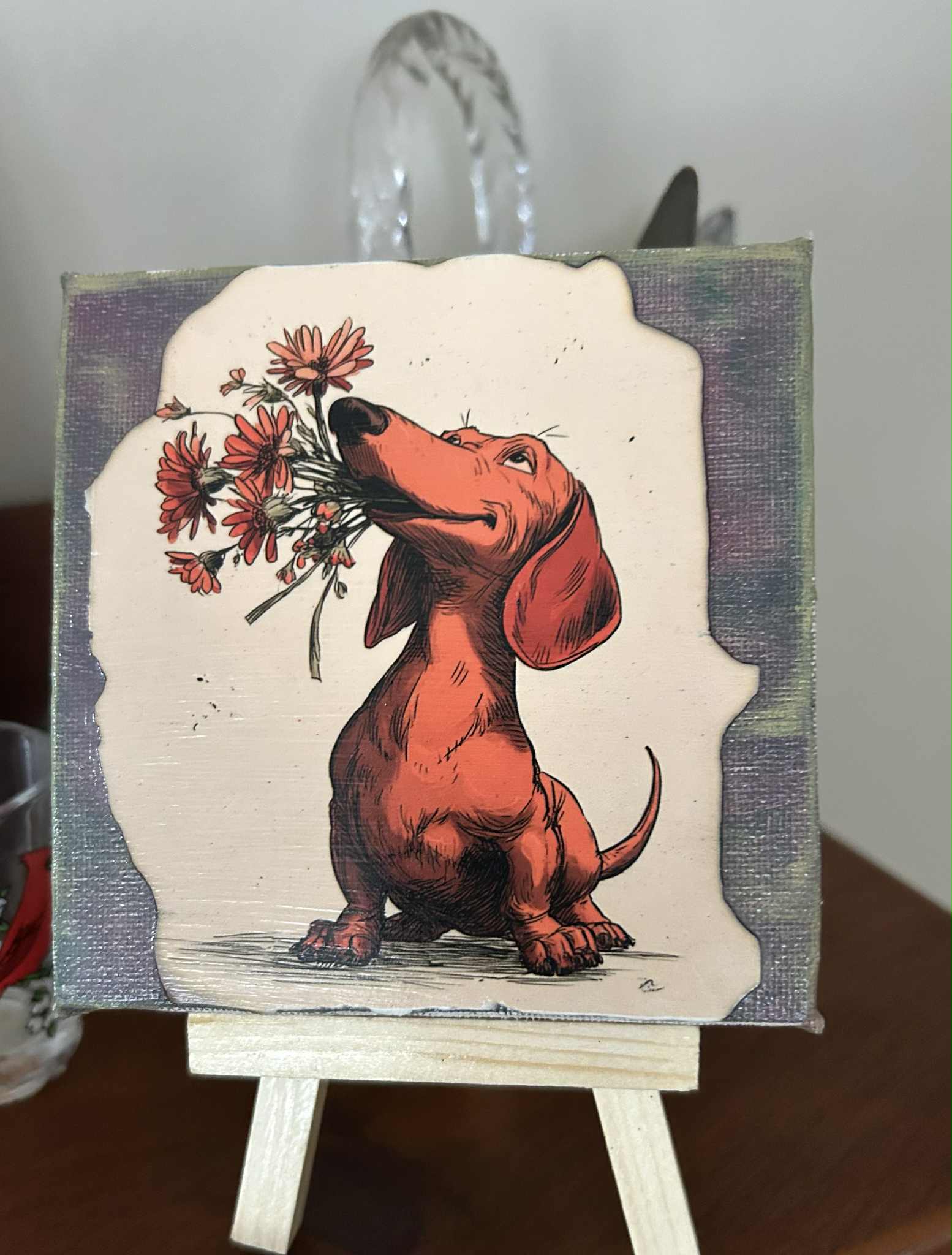 Measures 4"x 6". Can be framed, hung or sat on an easel as pictured.