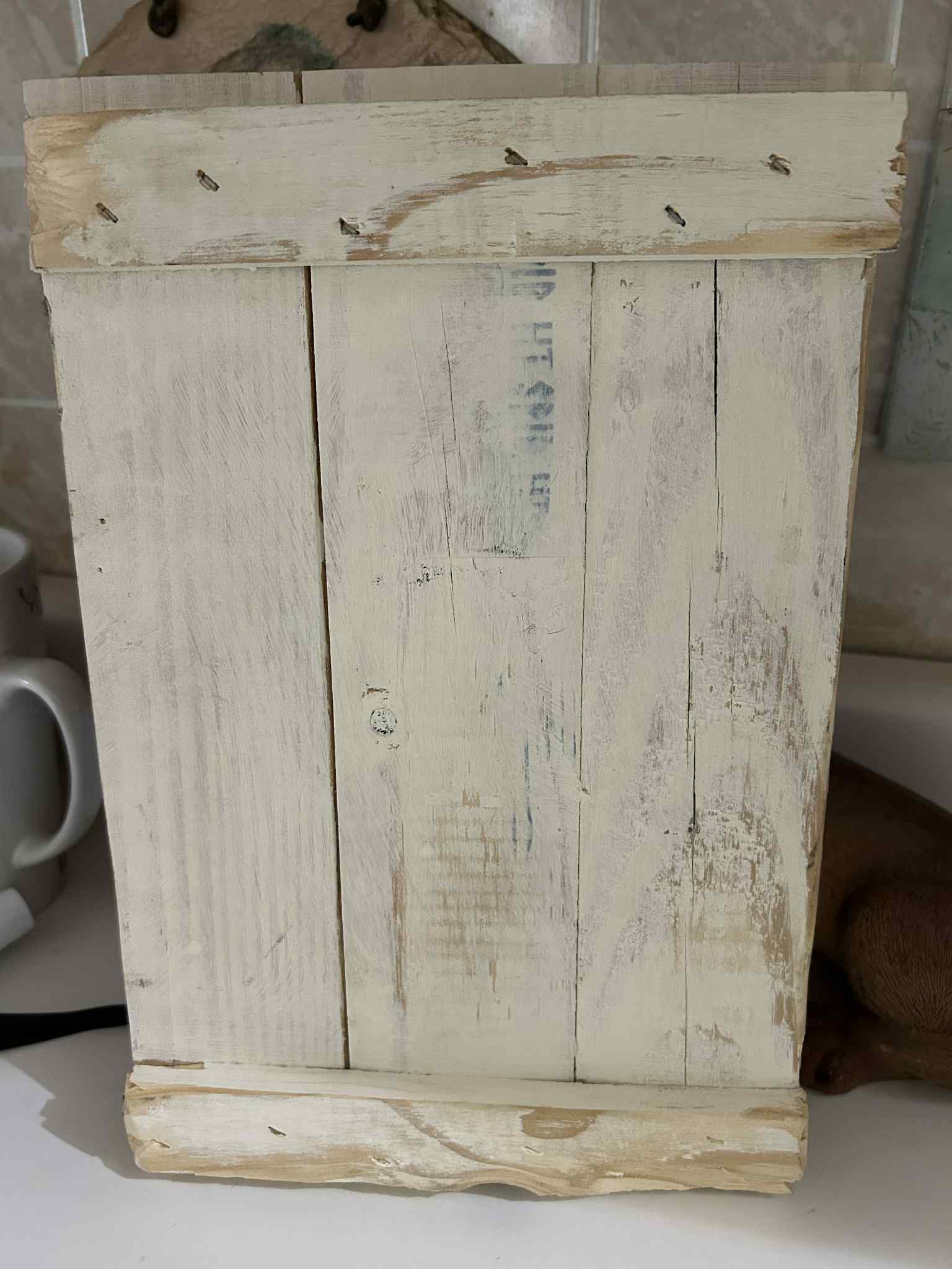 Measuring 12"x 8" Santa Dachshund has been decoupaged onto an old board.