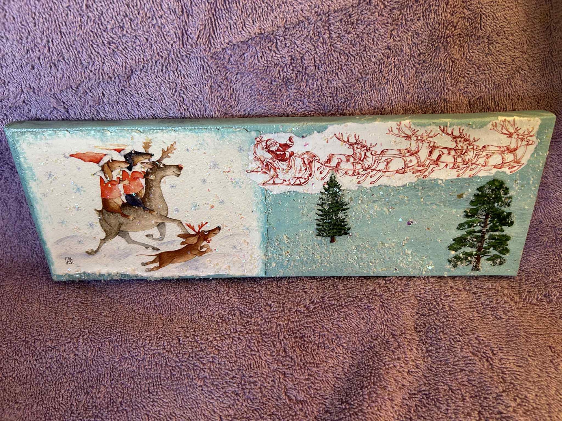 4"x12" canvas re-pawed into a Christmas Eve scene.